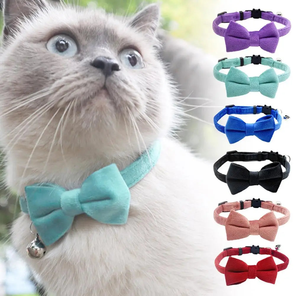 ألبس حيوانك الأليف المزيج المثالي من الأناقة والراحة مع طوق القوس المصنوع من جلد الغزال مع الجرس - وهو ملحق لا غنى عنه لصديقك الفروي