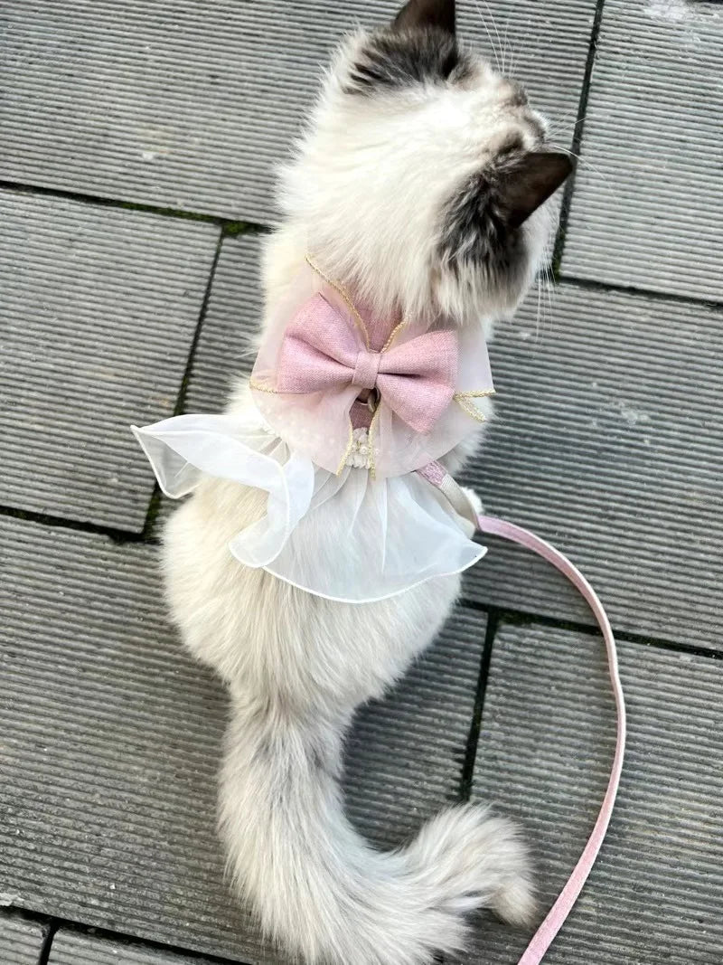 Make your pet the star of the show with this Cute Bowknot Cat Harness & Leash Set. Designed with an adorable princess bowknot, this harness and dress combo is perfect for cats, kittens, and small dogs like Chihuahuas and Teddy. Made from soft and durable nylon, the harness is comfortable for everyday wear and features a secure, adjustable fit to ensure your pet stays comfortable while looking stylish.